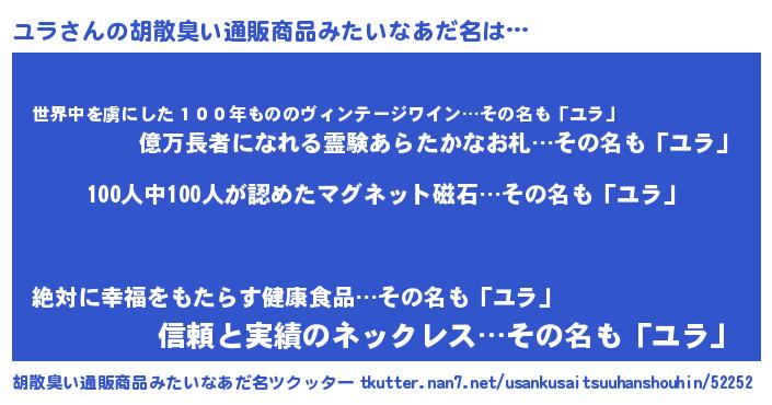 | ヘコむあだ名 | 『ユラお』『ユラふぇ~』『ユラ(笑)』 |
