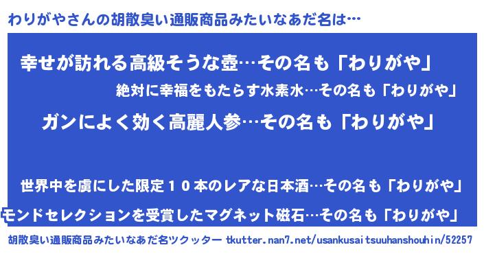 | 恥ずかしいあだ名 | 『ワリガヤデラックス』『わりっちょ』 |