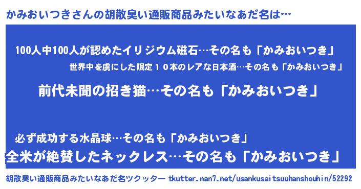 | ヘコむあだ名 | 『かみおいつき(小並感)』『かみ太郎』 |