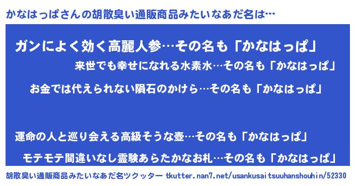 | ヘコむあだ名 | 『かなもー』『かなはっぱ(小並感)』 |