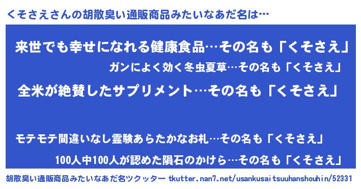 | ヘコむあだ名 | 『くそお』『くそさえ(笑)』『つくし』 |