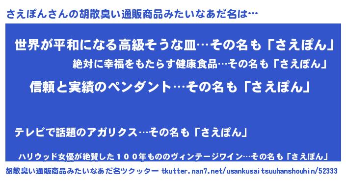 | 意味不明あだ名 | 『とにかく怪しいさえぽん』 |