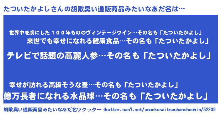 | 意味不明あだ名 | 『自称たついたかよし』 |