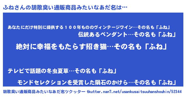 | 意味不明あだ名 | 『永久保存ふね』『住所不定無職ふね(77歳)』 |