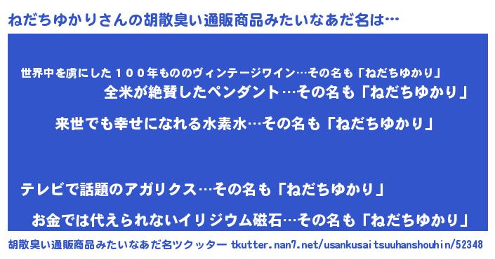 | ヘコむあだ名 | 『ねだちゆかり(苦笑)』『ねだ太郎』 |