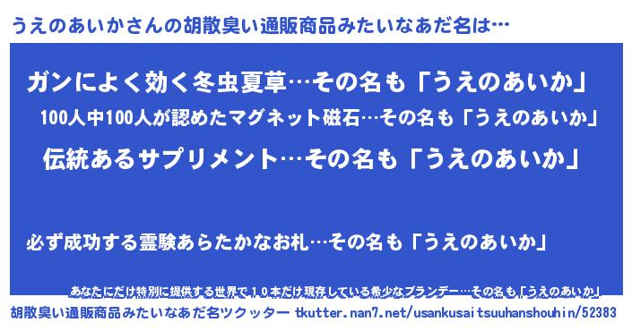| 意味不明あだ名 | 『とにかく怪しいうえのあいか』 |