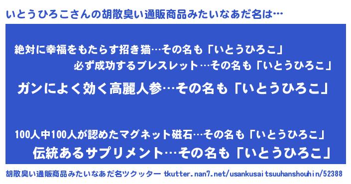 | ヘコむあだ名 | 『いとうひろこ(笑)』『いとを』 |