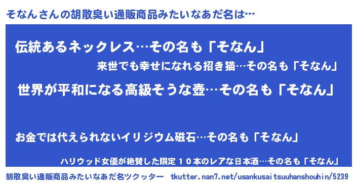 | ヘコむあだ名 | 『なまこ酢』『そな太郎』『そなにー』 |