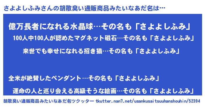 | ヘコむあだ名 | 『さよよしふみ(笑)』『さよにー』 |