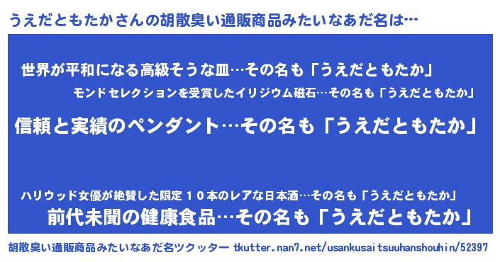 | 意味不明あだ名 | 『とにかく怪しいうえだともたか』 |