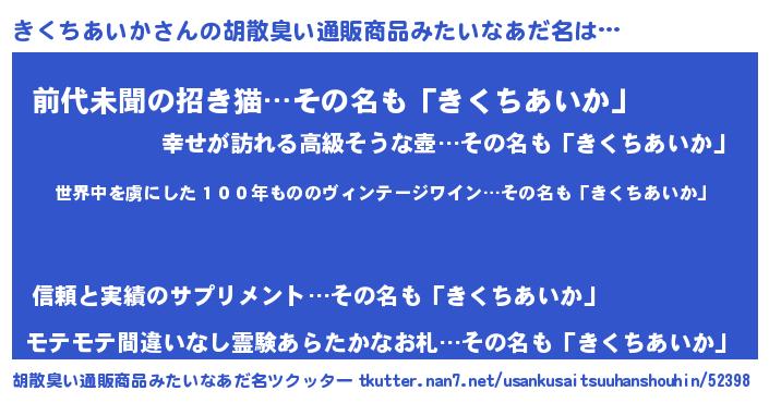 | 意味不明あだ名 | 『住所不定無職きくちあいか(13歳)』 |