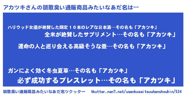 | 意味不明あだ名 | 『アカツキフォーエバー』 |