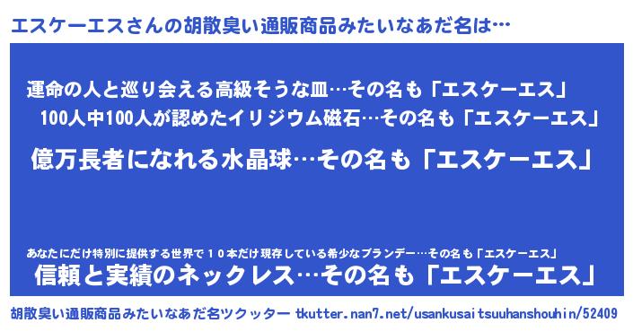 | 男性向けラノベタイトル風あだ名 | 『エスケーエスアートオンライン』 |