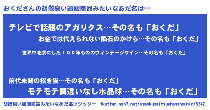 | 意味不明あだ名 | 『住所不定無職おくだ(13歳)』『自称おくだ』 |