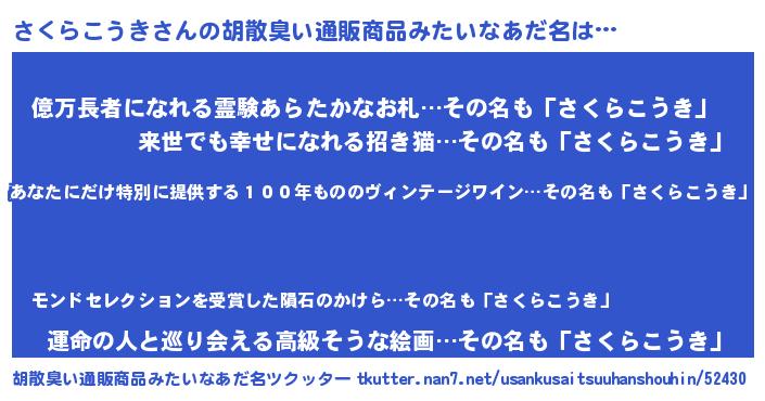 | 意味不明あだ名 | 『住所不定無職さくらこうき(2歳)』 |