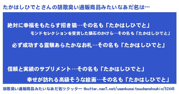 | ヘコむあだ名 | 『たかもー』『たかはしひでと(笑)』 |