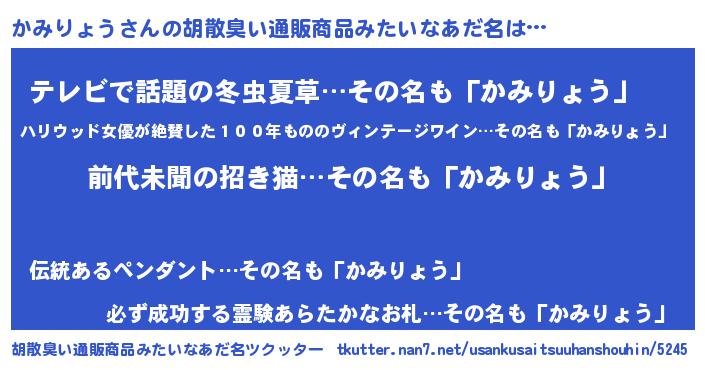 | ヘコむあだ名 | 『かみりょう(小並感)』『かみもー』 |