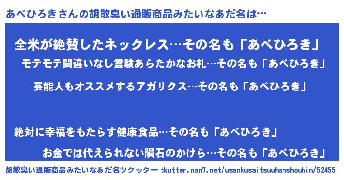 | 恥ずかしいあだ名 | 『アベヒロキデラックス』『アベリンリン』 |