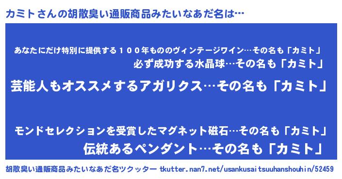 | 恥ずかしいあだ名 | 『カミトデラックス』『カミリンリン』 |