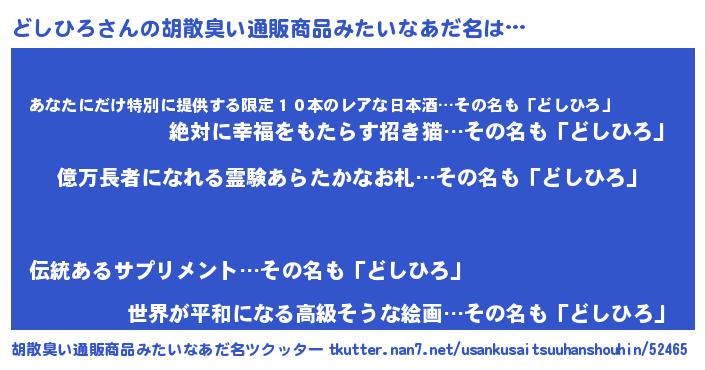 | 意味不明あだ名 | 『ペロリンどしひろ』『永久保存どしひろ』 |