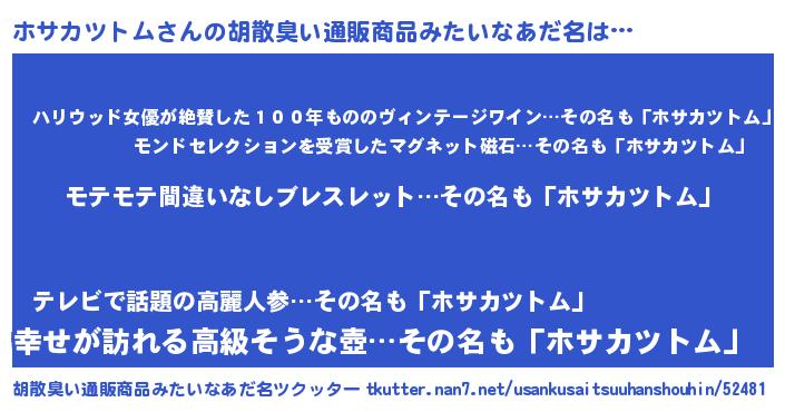 | ヒーロー風カッコイイあだ名 | 『スーパーホサカツトム』『仮面ホサダー』 |