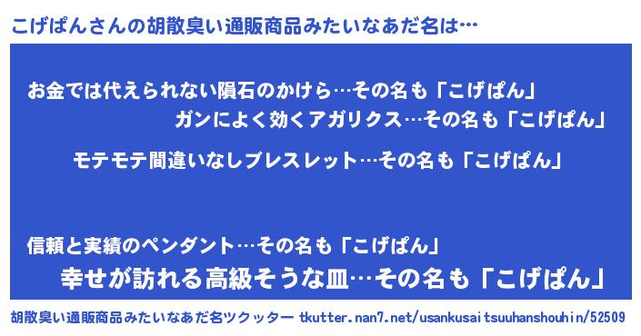 | ヘコむあだ名 | 『こげにー』『豆乳』『こげっちょ』 |