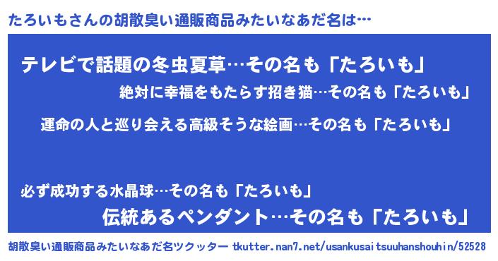 | ヒーロー風カッコイイあだ名 | 『ウルトラたろいもマン』『天弓騎士タロ』 |
