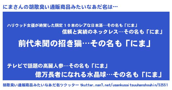 | ピコ太郎風あだ名 | 『ピコニ郎』『ニコ史郎』『ニマ十郎』 |