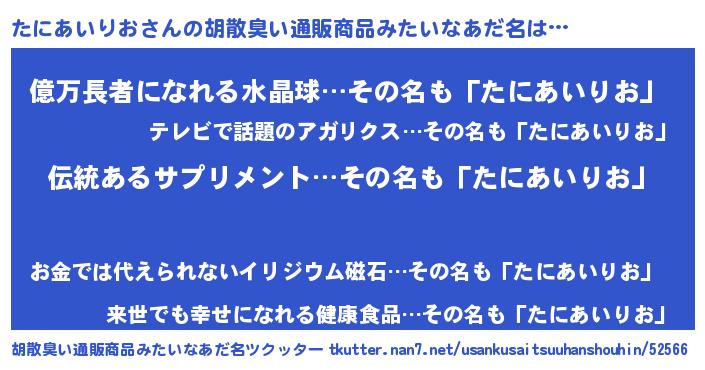 | 意味不明あだ名 | 『とにかく怪しいたにあいりお』 |