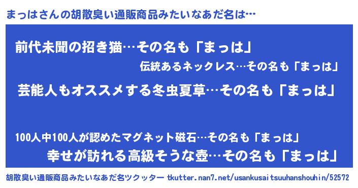 | ヘコむあだ名 | 『まっは(苦笑)』『つくし』『まっを』 |