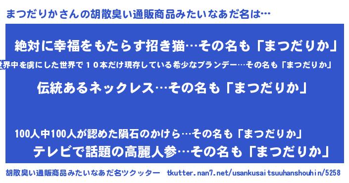 | 意味不明あだ名 | 『とにかく怪しいまつだりか』 |