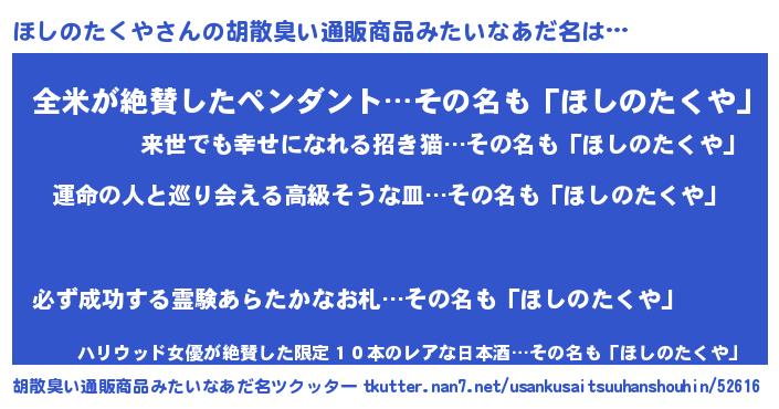 | 欧米人風あだ名 | 『ほしのたくやクリステル』 |