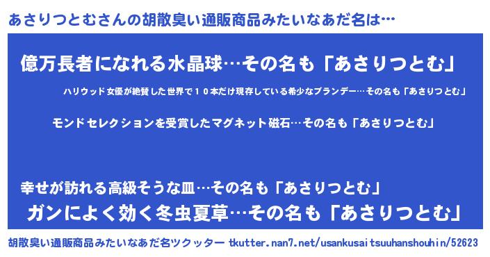| 肩書あだ名 | 『あさりつとむ大佐』『あさりつとむ社長』 |