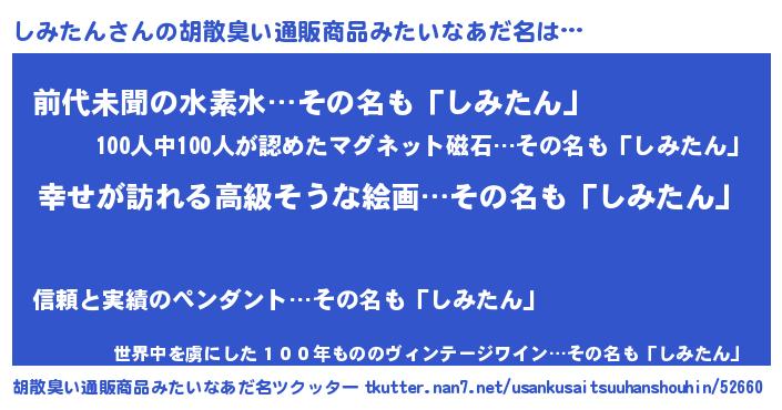 | ヒーロー風カッコイイあだ名 | 『ウルトラしみたんマン』『ネオシミタン』 |