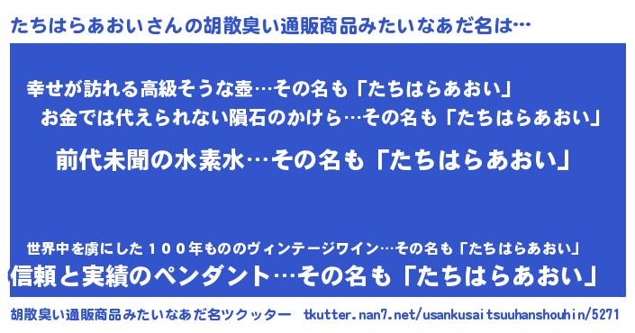 | ヘコむあだ名 | 『たちはらあおい(震え声)』『牛乳』 |
