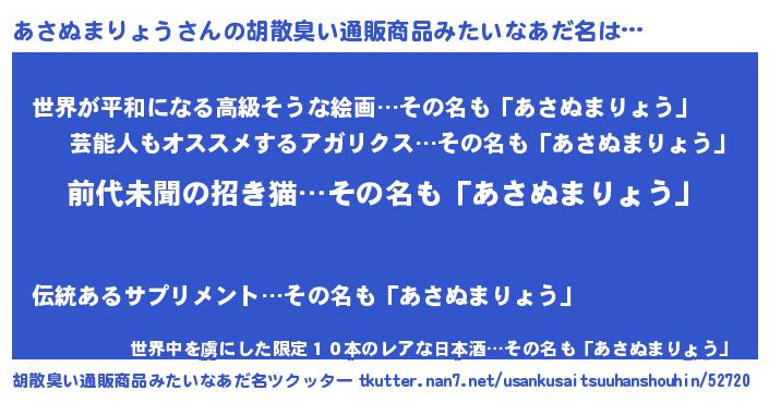 | 意味不明あだ名 | 『永久保存あさぬまりょう』 |