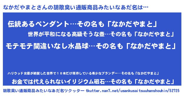 | 男性向けラノベタイトル風あだ名 | 『ナカダヤマトアートオンライン』 |