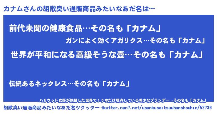 | ヘコむあだ名 | 『豆乳』『カナム(笑)』『カナっぺ』 |