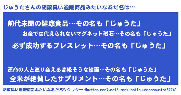 | 男性向けラノベタイトル風あだ名 | 『緋弾のジュウタ』『じゅうたの憂鬱』 |