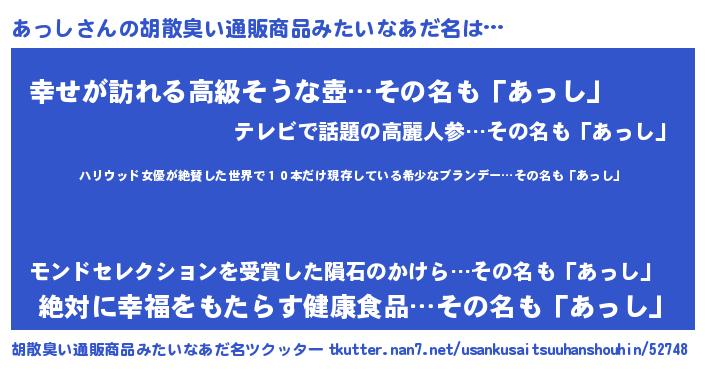 | ヘコむあだ名 | 『牛乳』『あっし(笑)』『あっにゅー』 |