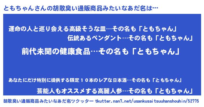 | 意味不明あだ名 | 『永久保存ともちゃん』『自称ともちゃん』 |