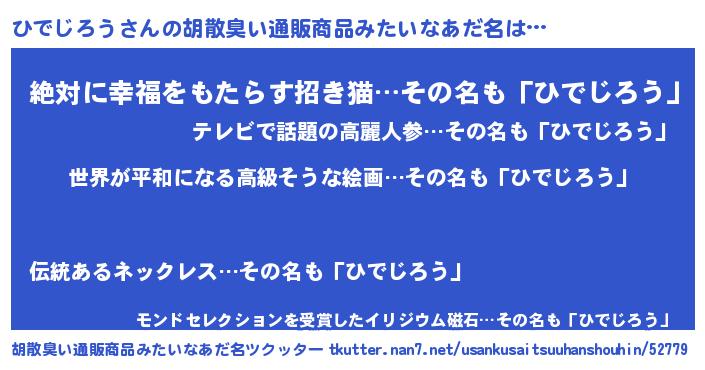 | ヘコむあだ名 | 『豆乳』『ひでじろう(遠い目)』 |