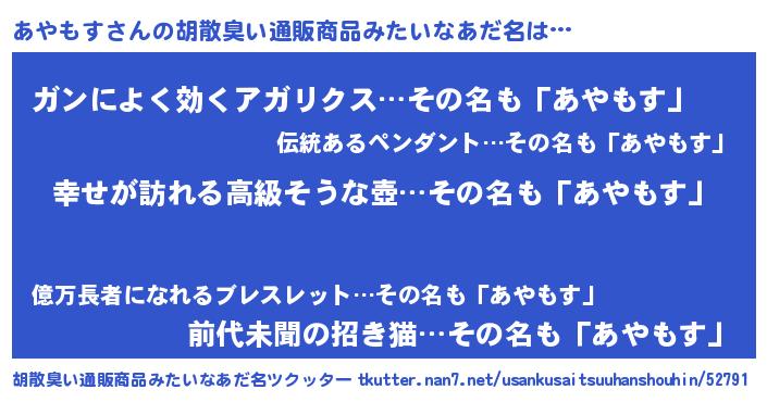 | 欧米人風あだ名 | 『あやもすクリステル』 |