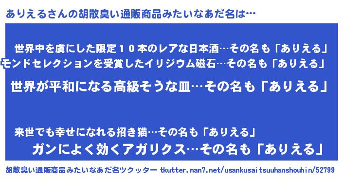 | 意味不明あだ名 | 『ありえるフォーエバー』『自称ありえる』 |