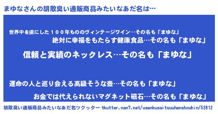 | 意味不明あだ名 | 『とにかく怪しいまゆな』 |