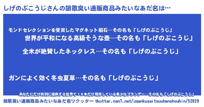 | 意味不明あだ名 | 『とにかく怪しいしげのぶこうじ』 |