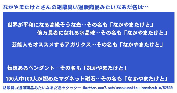 | 意味不明あだ名 | 『自称なかやまたけと』 |