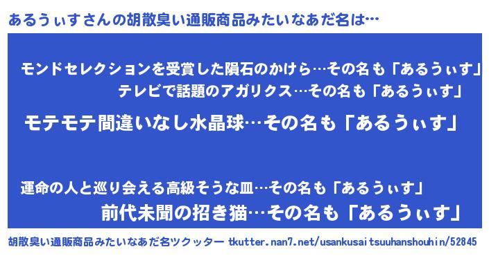 | ヘコむあだ名 | 『あるにゅー』『あるうぃす(遠い目)』 |