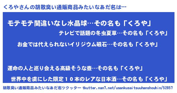 | ヘコむあだ名 | 『くろにゅー』『豆乳』『くろや(笑)』 |