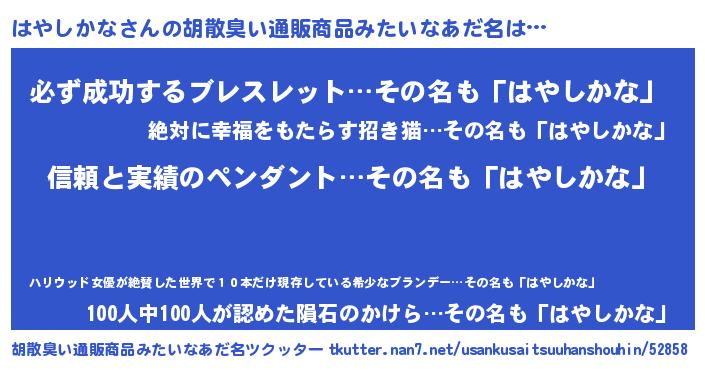 | ピコ太郎風あだ名 | 『ハヤ八郎』『ハコ八郎』『ハハ太郎』 |